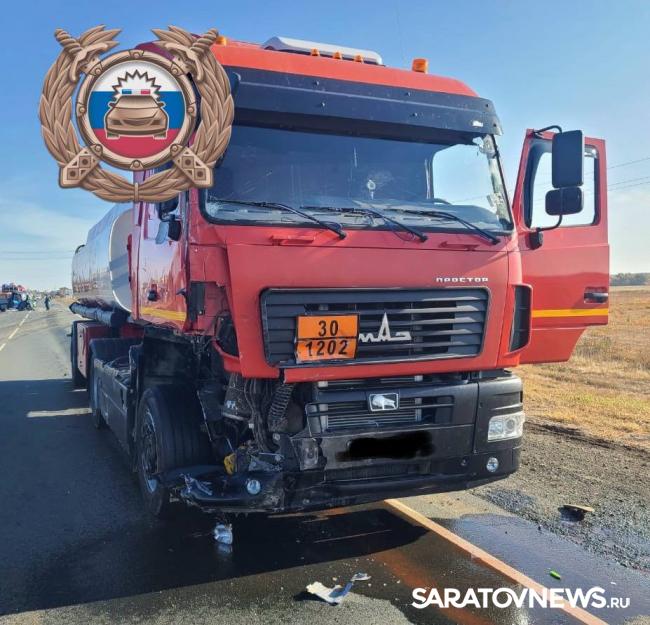 Авария случилась в 9:40. Около Татищева столкнулись "МАЗ" (с цистерной) и грузовая "ГАЗель". За рулем грузовика был 39-летний водитель. "ГАЗелью" управлял 59-летний мужчина, он погиб.