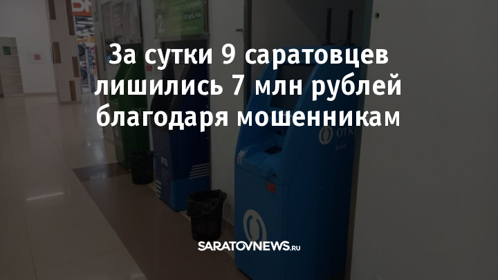 За сутки в Саратовской области было совершено 9 фактов мошенничества. Граждане лишились 7 млн 164 тысяч рублей.