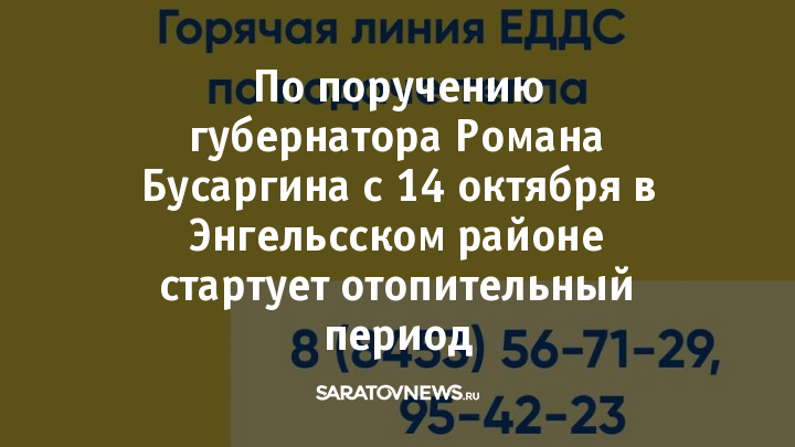 По поручению губернатора Романа Бусаргина с 14 октября в Энгельсском районе стартует отопительный период для объектов жилого фонда. Глава района подписал сегодня соответствующее постановление.