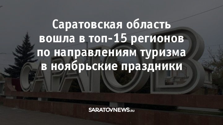 Саратовская область вошла в топ-15 регионов, заняв последнее место в списке, куда туристы собираются отправиться на ноябрьские праздники.