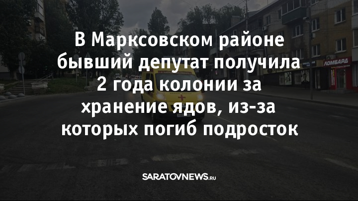 В Марксовском районе Саратовской области суд вынес приговор индивидуальному предпринимателю, по вине которой погиб 15-летний подросток. Женщина признана виновной в нарушении правил хранения химических веществ и отходов, повлекшем смерть человека по неосторожности (ч. 3 ст. 247 УК РФ).