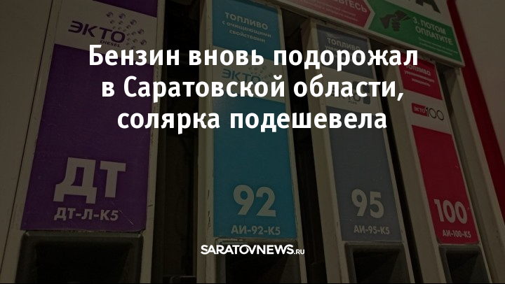 В Саратовской области за прошлую неделю вновь поднялась стоимость бензина, солярка подешевела. Информацию о ценах на топливо сообщил Росстат.