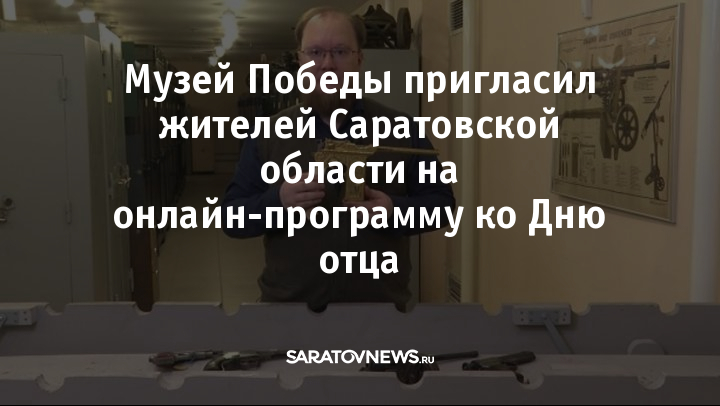19 октября Музей Победы пригласил жителей Саратовской области на тематическую онлайн-программу, приуроченную ко Дню отца. Интернет-пользователей ждет серия передач об оружейном хранилище Музея Победы, музыкальные клипы, посвященные папам, и документальный фильм.