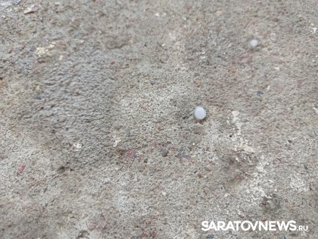 В Саратове вместе с прошедшим сильным ливнем выпал град. Жители Заводского района рассказывают, что видели град размером с мелкий горох.