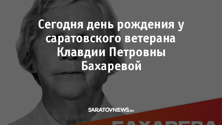 18 октября день рождения отмечает Почетный гражданин Саратова, ветеран Великой Отечественной войны Бахарева Клавдия Петровна.