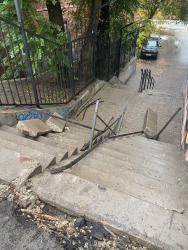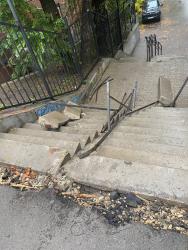 Вандалы вырвали перила с основанием, а потом все скинули на лестницу.