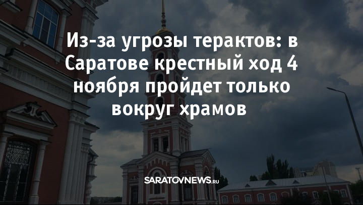 Митрополит Саратовский и Вольский Игнатий принял решение об изменении формата проведения традиционного крестного хода в честь Казанской иконы Божией Матери и Дня народного единства. Вместо масштабного шествия от храма Казанской иконы Божией Матери до Свято-Троицкого кафедрального собора, которое обычно проходило через центр города, верующие ограничатся крестными ходами вокруг храмов.