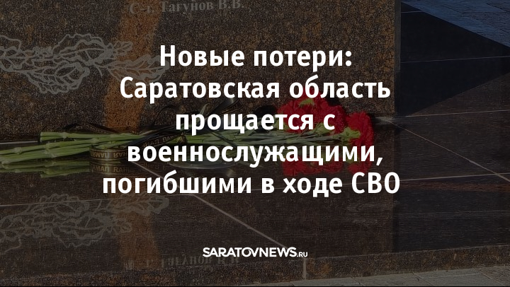 Саратовская область вновь скорбит о погибших защитниках. В ходе специальной военной операции смертью храбрых пали еще четверо уроженцев региона. Среди них — Эдуард Горбунов из Базарно-Карабулакского района, Вагиф Насибов из Фёдоровского района, Станислав Ткаченко из Аркадакского района и Владимир Егоров из Турковского района.