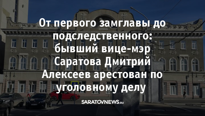 Дмитрий Алексеев занимал пост первого заместителя мэра Саратова с 2021 по 2022 год. До этого он возглавлял «Саратовгражданпроект» и комитет по управлению муниципальным имуществом. Конкретная статья уголовного дела, по которой арестован экс-чиновник, в открытых источниках не указана.