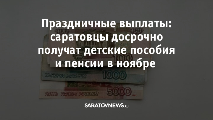 В связи с предстоящими ноябрьскими праздниками Социальный фонд России по Саратовской области скорректировал график выплат пенсий и пособий. Жители региона получат денежные средства досрочно, если дата их перечисления выпадает на выходные или праздничные дни, сообщили в отделении Социального фонда России по Саратовской области.