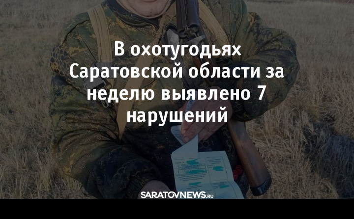 В Саратовской области продолжаются рейды по контролю за соблюдением правил охоты. За минувшую неделю специалисты регионального комитета охотничьего хозяйства и рыболовства совместно с сотрудниками полиции и Росгвардии зафиксировали семь нарушений.