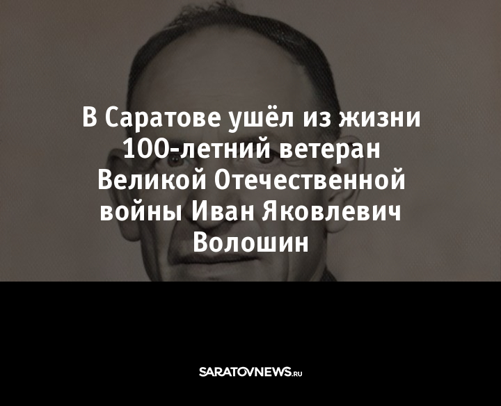 В Саратове скончался ветеран Великой Отечественной войны, почётный гражданин города Иван Яковлевич Волошин. О его смерти сообщил мэр Михаил Исаев.