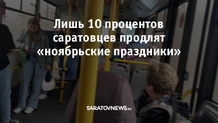 В Саратове 64 процента экономически активных горожан не станут продлевать «ноябрьские праздники», присоединив к ним отгулы или дни отпуска.