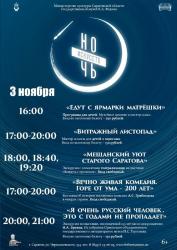- 18.00, 18.40, 19.20 экскурсии «Мещанский уют старого Саратова» с элементами театрализации на выставке «Встреча с прошлым»;