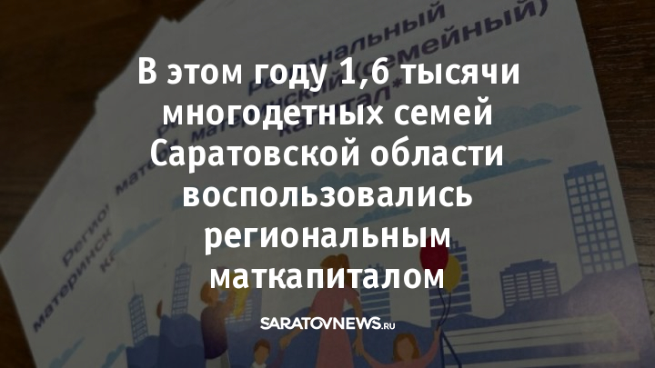 В Саратовской области с начала текущего года 1,6 тысяч многодетных семей воспользовались региональным материнским капиталом. Напомним, он назначается за рождение третьего и последующего детей. Размер выплаты составляет свыше 138 тысяч рублей.