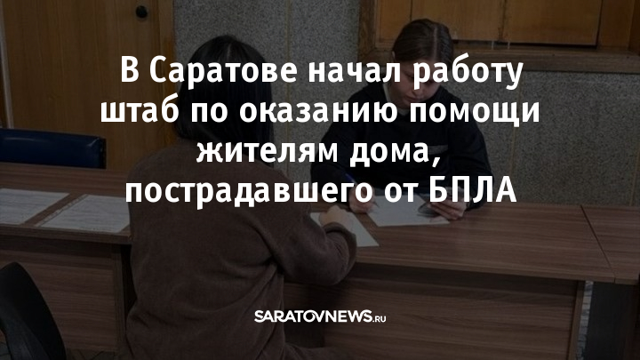 Сегодня в Саратове на базе администрации Заводского района начал работу штаб по оказанию помощи жителям пострадавшего от БПЛА дома.