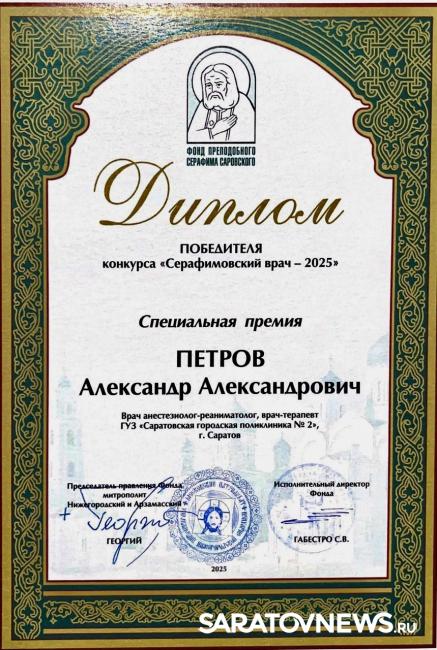 Министерство здравоохранения Саратовской области сообщает о победе местных специалистов в общероссийском конкурсе «Серафимовский врач». Церемония награждения прошла в Дивеевском монастыре в рамках конференции, посвященной демографическому развитию страны.