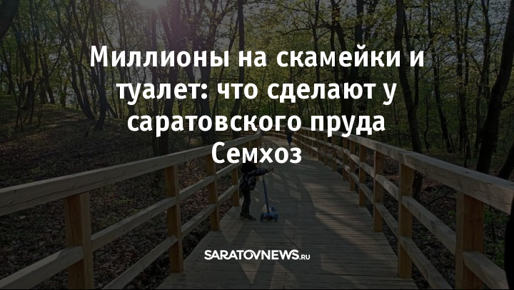 В Кировском районе Саратова преобразится зона отдыха у пруда Семхоз. На эти цели из бюджета выделили 3,9 миллиона рублей. Информация о закупке появилась на официальном портале госзаказа.