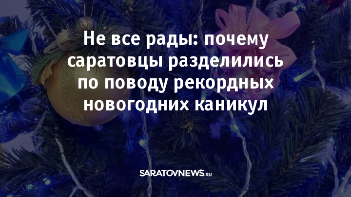 Новогодние каникулы 2026 года станут самыми длинными в истории современной России — 12 дней подряд: с 31 декабря по 11 января. Однако далеко не все жители Саратова рады такому «подарку». Согласно опросу экономически активных горожан, проведенному платформой SuperJob, только 33% считают утверждённую продолжительность отдыха оптимальной.