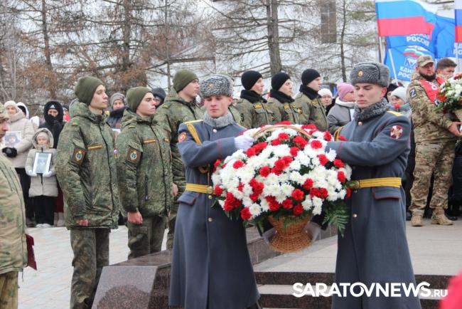 В мероприятии приняли участие губернатор Роман Бусаргин, глава Саратова Михаил Исаев, председатель регионального парламента Алексей Антонов, председатель Общественной палаты Борис Шинчук, главный федеральный инспектор по Саратовской области Виталий Сластной, родственники воинов.