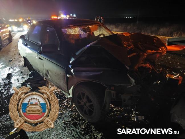 Аврия случилась в 21:20 около Татищева. Столкнулись Kia, "Лада Приора", Volkswagen и "ВАЗ-2110". "Приорой" управлял 26-летний парень, Volkswagen вёл 23-летний молодой человек, за рулем "десятки" была женщина. Данные по другим участникам уточняются. После удара "Приора" оказалась за пределами дороги.