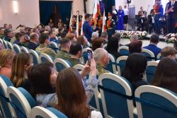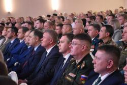 Губернатор Роман Бусаргин поздравил собравшихся — чиновников, депутатов, силовиков и общественников — с государственным праздником. В своей речи он заявил, что Россия следует особому пути, основанному на традициях, ценностях и любви к Отечеству.
