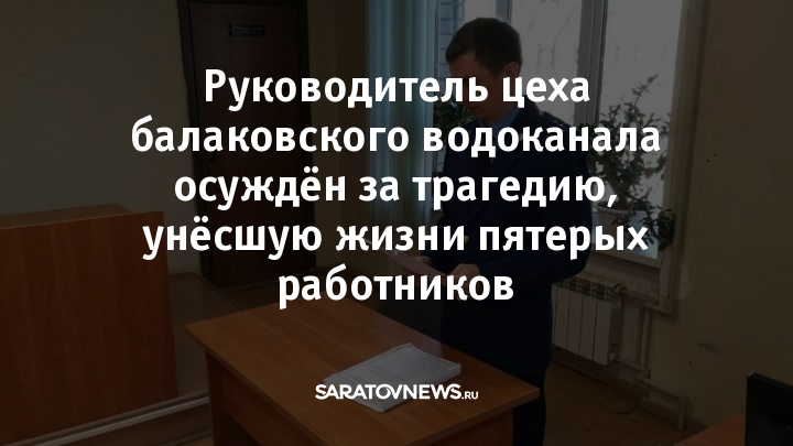 В Балаково суд вынес обвинительный приговор 51-летнему руководителю участка очистных сооружений МУП «Балаково-Водоканал». Его признали виновным в грубом нарушении требований охраны труда, что привело к смерти пяти человек.