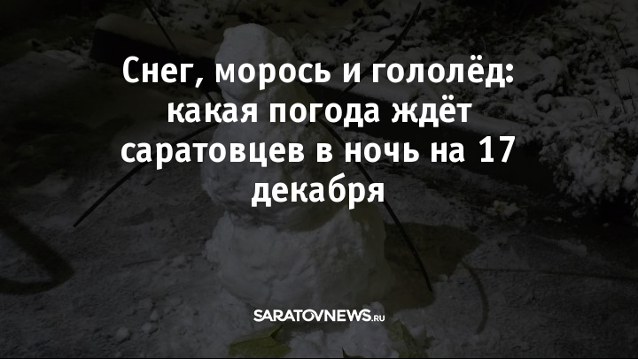 В Саратове в ночь с 16 на 17 декабря ожидается облачная погода с осадками и ухудшением дорожной обстановки. Прогноз опубликовал региональный Гидрометцентр.