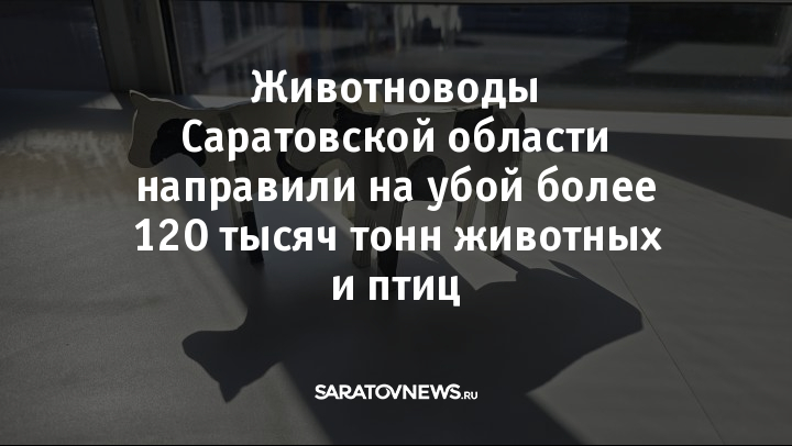 В Саратовской области за период с января по октябрь 2025 года на убой отправили 120,8 тысяч тонн животных и птиц в живом весе. Об этом на заседании областного правительства сообщил зампред правительства — министр сельского хозяйства региона Роман Ковальский.