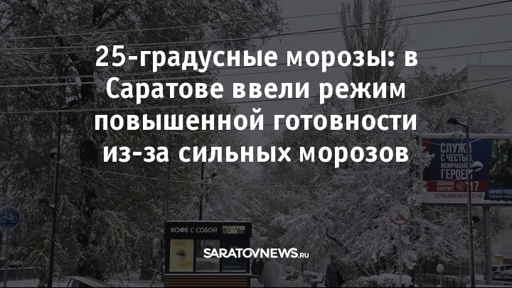 В Саратове и районах области введён режим повышенной готовности в связи с прогнозируемыми морозами до минус 25 градусов. Такое распоряжение дал губернатор Роман Бусаргин по итогам оперативного совещания, посвящённого погодной обстановке и работе коммунальных служб.