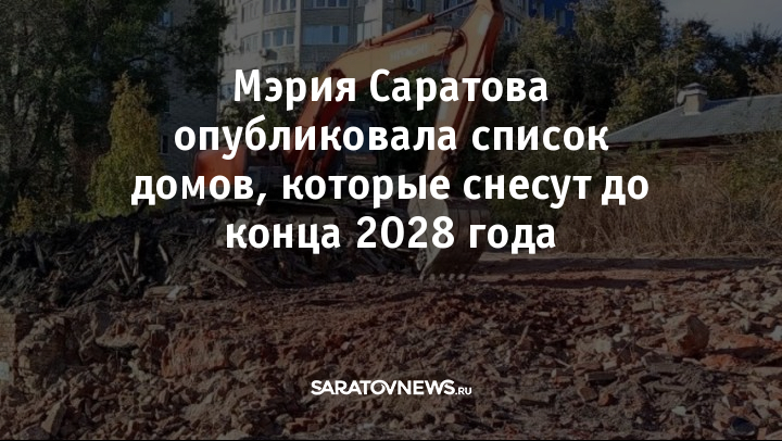 Администрация Саратова выпустила постановления о признании четырёх многоквартирных домов аварийными и подлежащими сносу. Собственникам квартир в этих зданиях необходимо освободить жильё. Снос пройдет не позднее 1 декабря 2028 года.