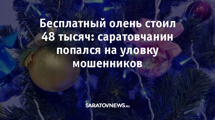Житель Заводского района Саратова стал жертвой мошенников, пытаясь бесплатно получить новогоднее украшение. Об этом сообщили в региональном МВД.