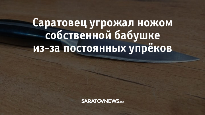 В Саратове полиция возбудила уголовное дело после того, как 26-летний мужчина угрожал убийством своей 79-летней бабушке. Инцидент произошёл 7 января в квартире на улице Батавина в Кировском районе.