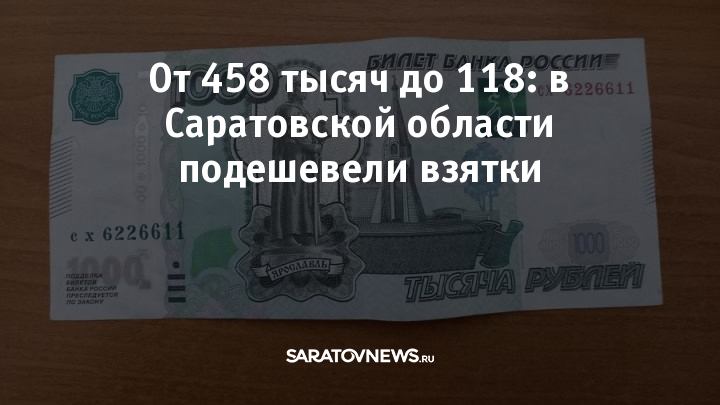 В Саратовской области в 2025 году средний размер взятки упал почти вчетверо — до 118 тысяч рублей. Об этом сообщает региональная прокуратура, ссылаясь на данные по уголовным делам о получении взяток (статья 290 УК РФ), расследованным с января по декабрь.
