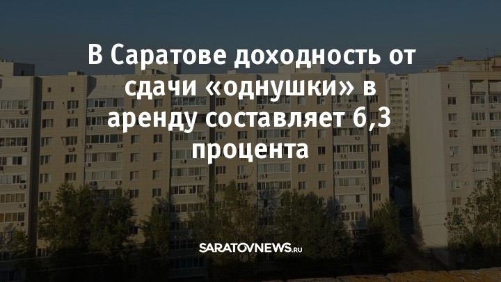 В Саратове доходность от сдачи в аренду однокомнатной квартиры составляет 6,3 процента. В январе 2025 года этот показатель составлял 6,4 процента, а в июле – 6,8 процентов.