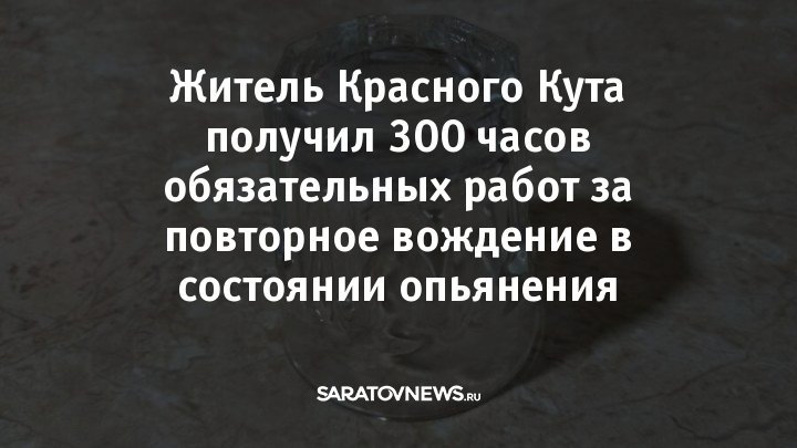 Житель Красного Кута получил 300 часов обязательных работ за повторное управление транспортным средством в состоянии алкогольного опьянения. Об этом сообщает прокуратура Краснокутского района, поддержавшая обвинение в суде.