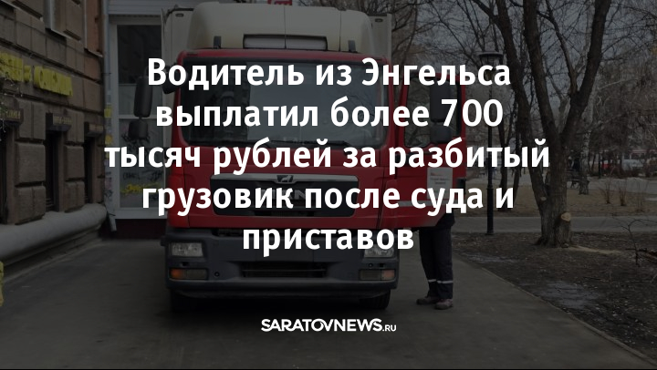 Житель Энгельса, бывший водитель-экспедитор транспортной компании, полностью выплатил 727 тысяч рублей за повреждённый в ДТП грузовик. Об этом сообщили в пресс-службе УФССП России по Саратовской области.