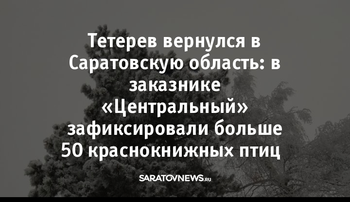 Особое внимание привлекло восстановление популяции краснокнижного тетерева. Как отметил председатель комитета Александр Гаврилов, после резкого сокращения численности с 2015 года и многолетнего отсутствия птицы в этой местности тетерев снова выбрал заказник для постоянного обитания. По предварительным оценкам, здесь обосновалось уже более 50 особей. Вид занесён в Красную книгу Саратовской области с 1996 года.
