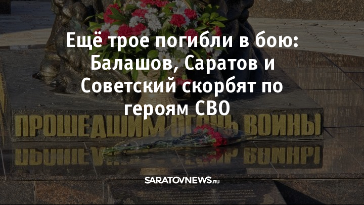 В зоне специальной военной операции погибли ещё трое военнослужащих из Саратовской области. Об этом сообщили администрации Саратова, Балашовского и Советского районов.