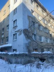 По словам жильцов, состояние здания стремительно ухудшается: фасад осыпается, в подъездах — запущенность, а по стенам и потолкам идут глубокие трещины. В подвале постоянно стоит вода почти до самого верха, а на поверхностях — чёрные пятна, похожие на плесень.