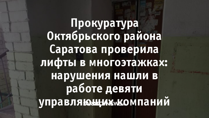 Прокуратура Октябрьского района Саратова совместно со специалистами Ростехнадзора проверила состояние лифтов в многоквартирных домах. Надзорники оценили техническое состояние оборудования, соблюдение правил промышленной безопасности и своевременность технических испытаний.