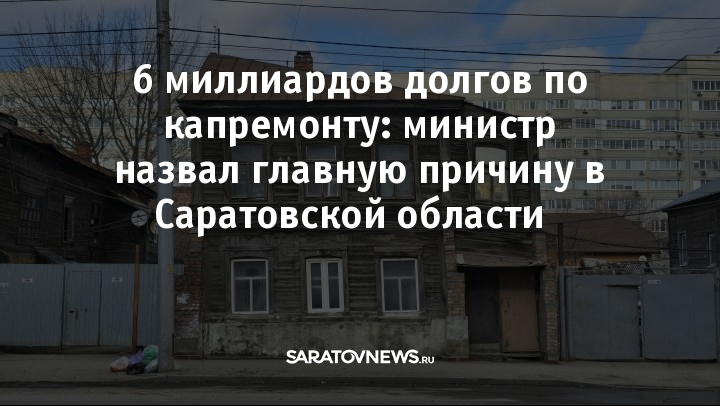 Дефицит средств в Фонде капитального ремонта Саратовской области достиг 6 миллиардов рублей. Об этом сегодня на депутатских слушаниях в областной Думе заявил министр строительства и ЖКХ региона Михаил Бутылкин.