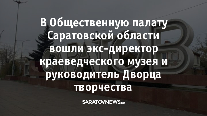 Саратовскую Общественную палату пополнят два новых члена — бывший директор областного краеведческого музея Евгений Казанцев и руководитель Дворца творчества детей и молодежи Никита Муковозов. Об этом сегодня сообщили в комитете региональной думы по информационной политике после заседания.
