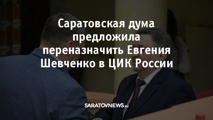 Саратовская областная дума 11 февраля одобрила предложение о переназначении Евгения Шевченко членом Центральной избирательной комиссии России. Кандидатуру внесут на рассмотрение Совета Федерации.