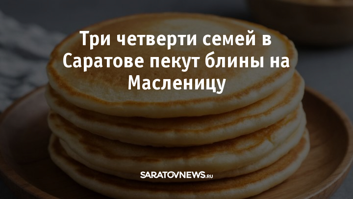 В Саратове 74% семей сохраняют традицию печь блины на Масленицу. Об этом сообщает портал SuperJob по итогам опроса экономически активного населения города.