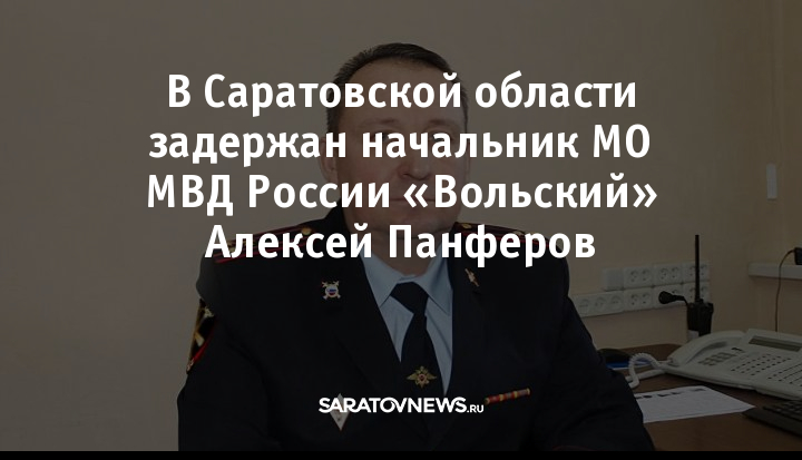 В Саратовской области задержан начальник МО МВД России «Вольский» Алексей Панферов. Информацию изданию "СарИнформ" подтвердили несколько источников в правоохранительных органах.