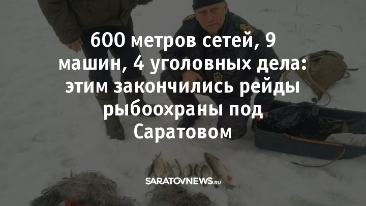 За две недели в Саратовской области рыбоохрана провела 56 рейдов и пресекла десятки нарушений. Инспекторы Волго-Камского территориального управления Росрыболовства с 26 января по 8 февраля выявили незаконный вылов рыбы и изъяли запрещённые орудия лова. Об этом сообщает пресс-служба ведомства.