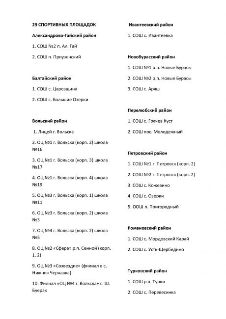 Также в список вошли учебные заведения Александрово-Гайского, Балтайского, Ивантеевского, Новобурасского, Перелюбского, Петровского, Романовского и Турковского районов.