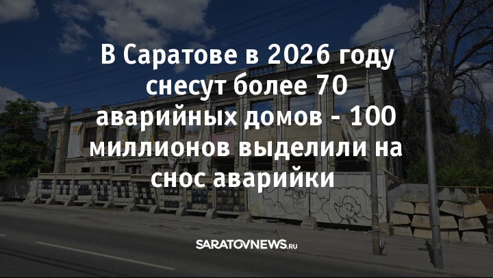 Главная / Общество / В Саратове в 2026 году снесут более 70 аварийных домов - 100 миллионов выделили на снос аварийки