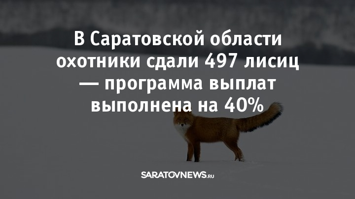 «На данный момент в Саратовской области охотники добыли и сдали на утилизацию 497 лисиц из 1250 предусмотренных программой. Полностью лимит, установленный по выплатам для каждого района, исчерпан в восьми районах... Напомню, в целом добыча этого хищника в Саратовской области не лимитирована. Ограничения касаются только того количества добытых животных, за которое предусмотрено вознаграждение», — рассказал Денис Горбунов.